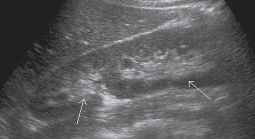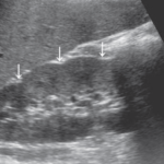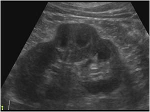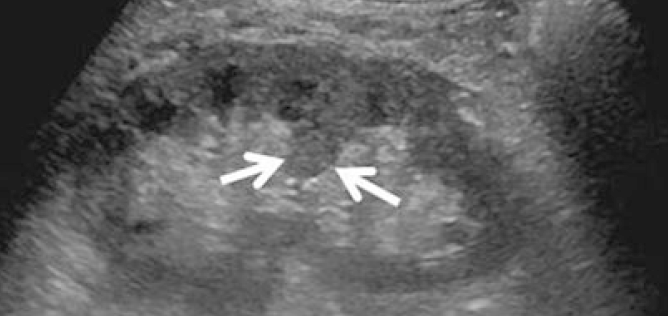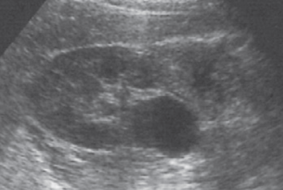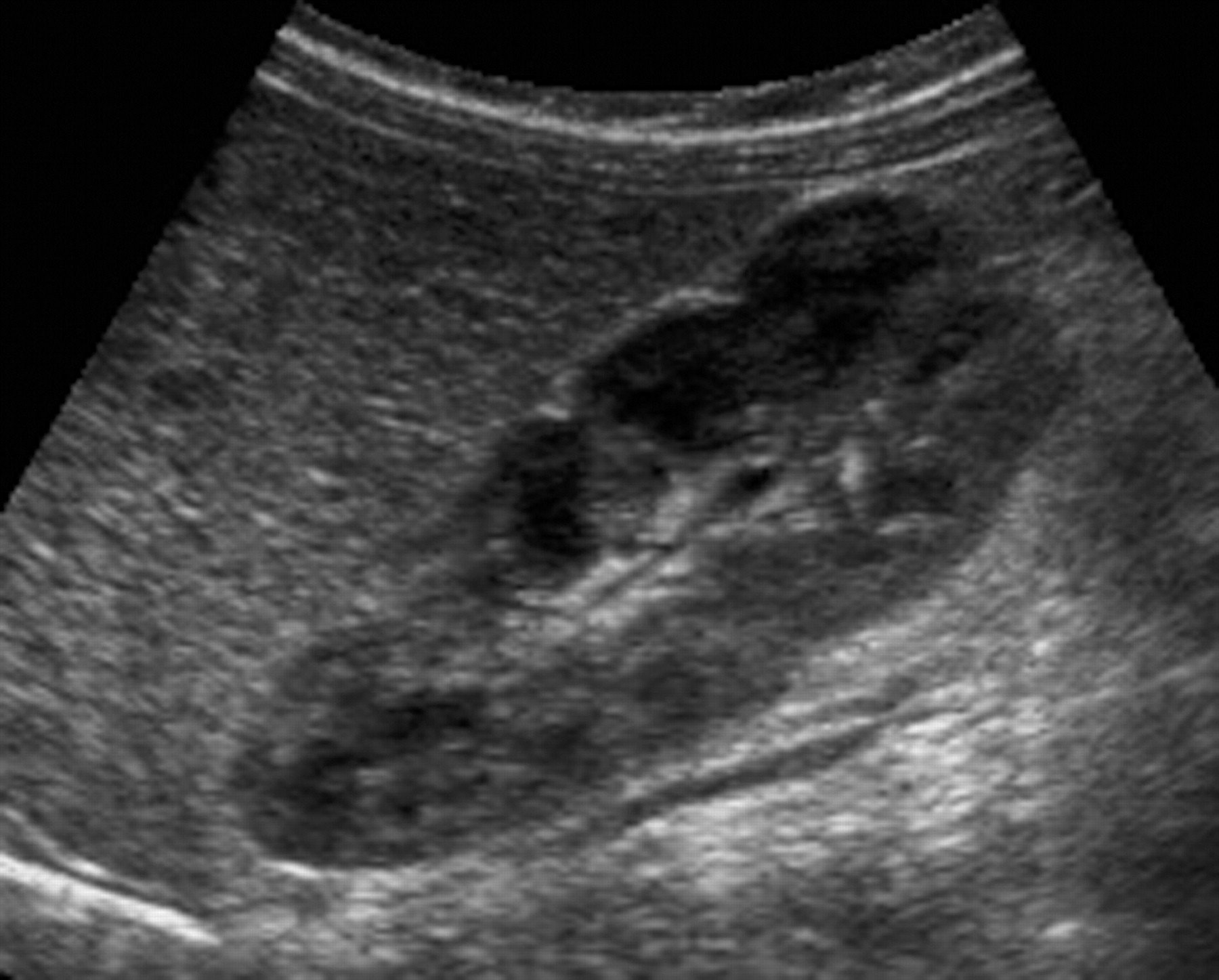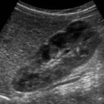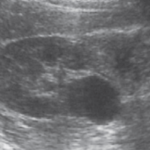 يميزه تناسق echogenicity بينه وبين باقي parenchyma بالإضافة لعدم وجود ارتفاع أو تغير ملحوظ في قراءات colour Doppler. غالبا لا يزيد عرضه عن ٣ سم.