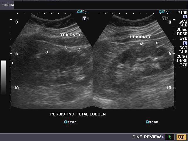 في مرحلة تطور الجنين تتكون الكلية عن طريق تلاحم عدة فصوص lobes. وهذه الفصوص قد تستمر إلى مابعد مرحلة البلوغ. تظهر بشكل تموجات في القشرة الخارجية للكلية. من المهم أن لا نخطئ في تشخصيها كندبة scar أو ورم في الكلية.