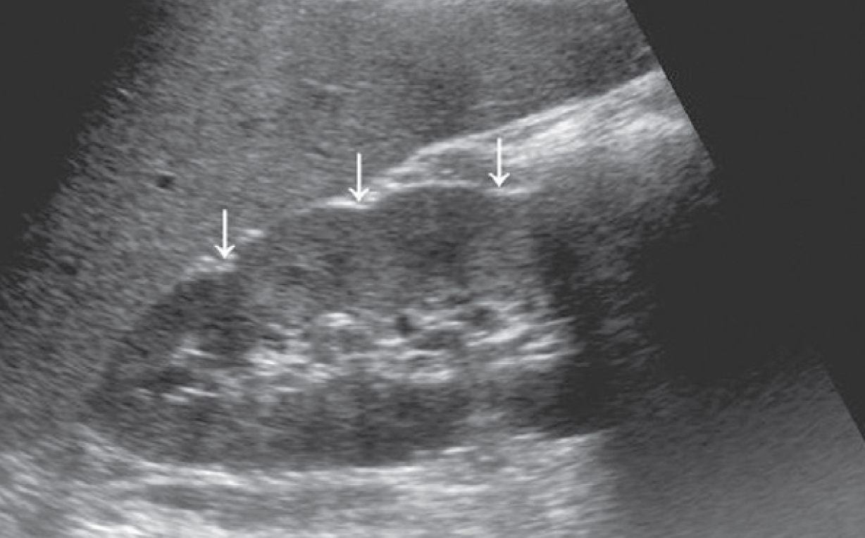 في هذه الحالات يجب التأكد من السماكة (متناسقة) و echogenicity (غير مختلفة) و colour Doppler (طبيعية).