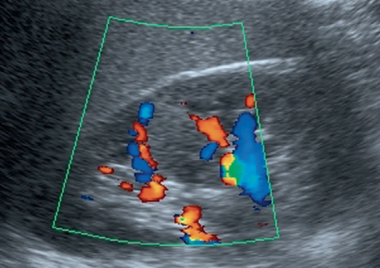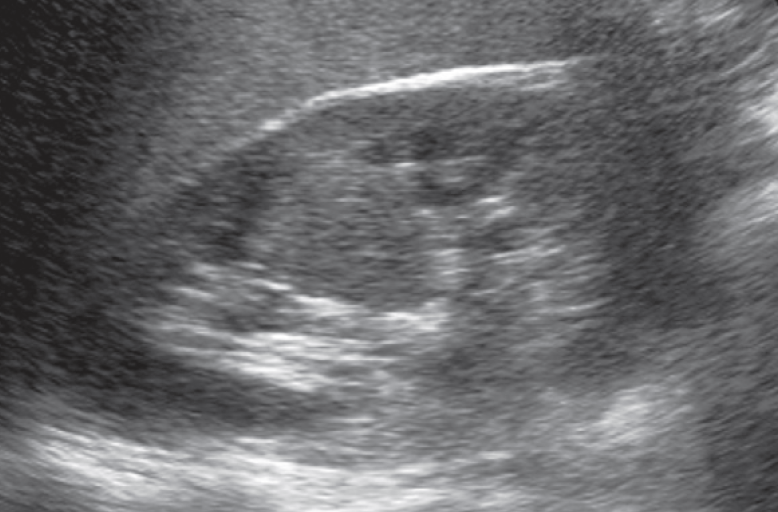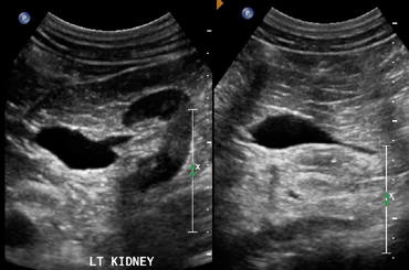 يميزه تناسق echogenicity بينه وبين باقي parenchyma بالإضافة لعدم وجود ارتفاع أو تغير ملحوظ في قراءات colour Doppler. غالبا لا يزيد عرضه عن ٣ سم.